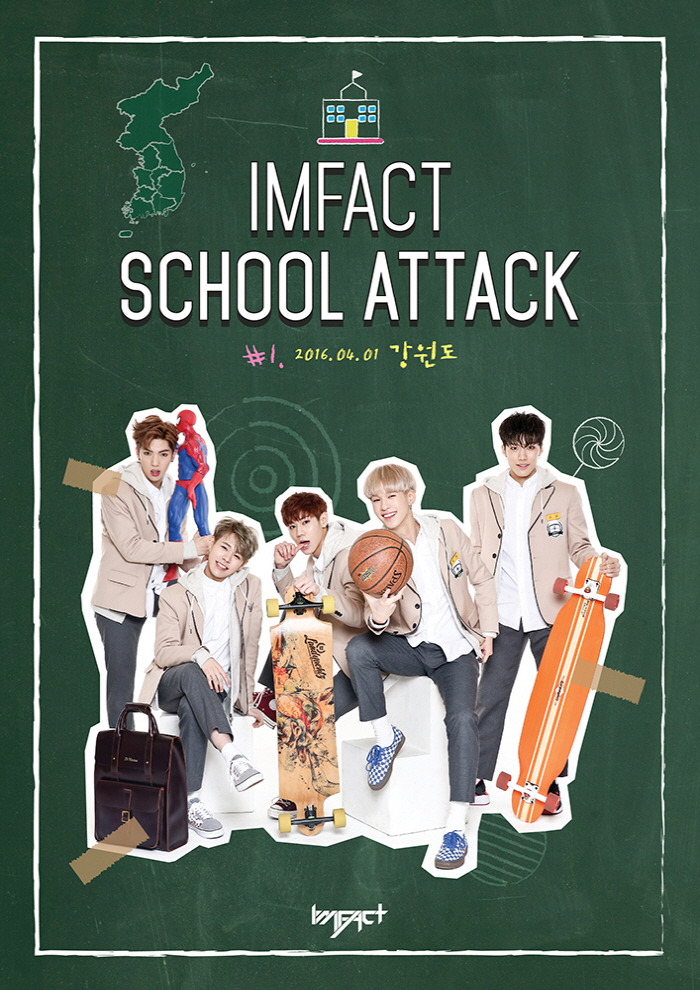 한편 임팩트는 스쿨어택 이벤트를 진행과 함께 새 앨범 준비에 박차를 가할 예정이다.보이그룹 임팩트(IMFACT)가 ‘스쿨어택’ 이벤트를 전국으로 확대, 오는 4월1일 강원도를 시작으로 전국의 학교를 기습으로 방문해 게릴라 공연을 연다. 사진은 스쿨어택 이벤트 포스터. <사진제공=스타제국>