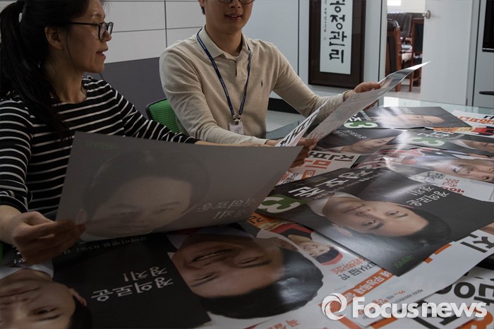 (서울=포커스뉴스) 20대 총선 공식선거 운동을 하루 앞둔 30일 오전 서울 종로구 중구 선거관리위원회 사무실에서 직원들이 선거 벽보 확인 및 정리 작업을 하고 있다.