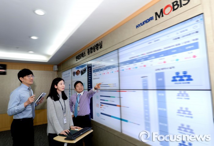 한편 현대모비스는 지난 2010년부터 ‘일곱가지 아름다운 약속’이라는 대명제하에 협력사들의 경쟁력 향상과 실질적 상생협력 확대를 지원하고 있다. △자금지원 △기술역량지원 △교육·인력지원 △2차 협력사지원 △협력사소통 △공정거래준수 △기타(해외 동반진출 및 벤치마킹 등) 지원의 7가지 주제로 세분화된 동반성장 활동을 펼치고 있다.. 현대모비스 직원들이 새롭게 구축한 '동반성장실적관리시스템'을 활용해 체계적 상생프로그램 운영을 위한 데이터를 집계하고 있다. <사진제공=현대모비스>