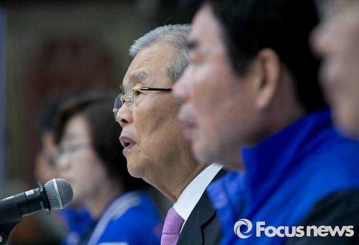 (수원=포커스뉴스) 30일 오전 수원 팔달구 경기도의회에서 열린 더불어민주당 경제살리기 경기 국회의원 후보자 연석회의에 참석한 김종인 비대위 대표가 모두발언을 하고 있다.