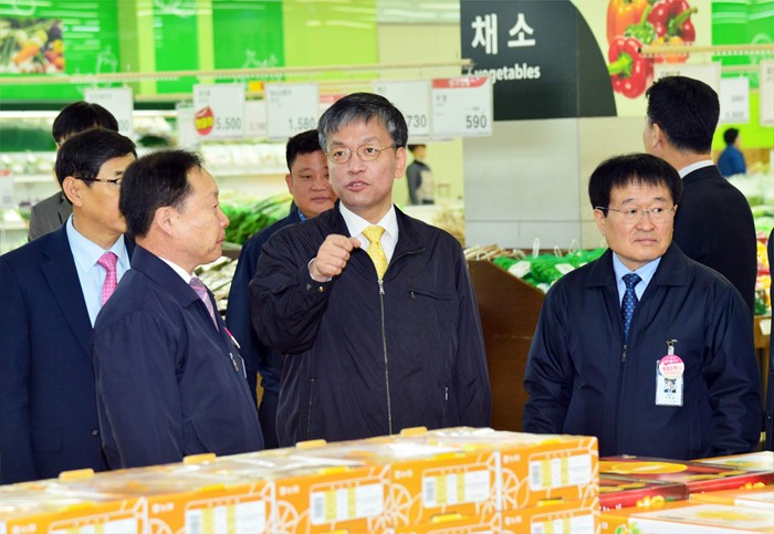 (서울=포커스뉴스) 최상목 기획재정부 차관이 물가 점검 차 30일 서울 서초구 양재동 농협 하나로클럽을 방문해 주요품목 가격 동향 점검을 하고 있다. <사진제공=기획재정부>