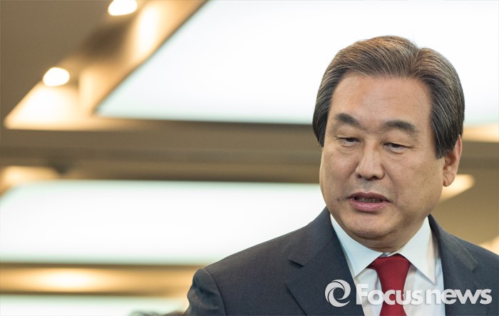 서울=포커스뉴스) 30일 오후 서울 중구 프레스센터에서 열린 관훈클럽 초청 관훈토론회에 참석한 김무성 새누리당 대표가 자리로 향하고 있다.