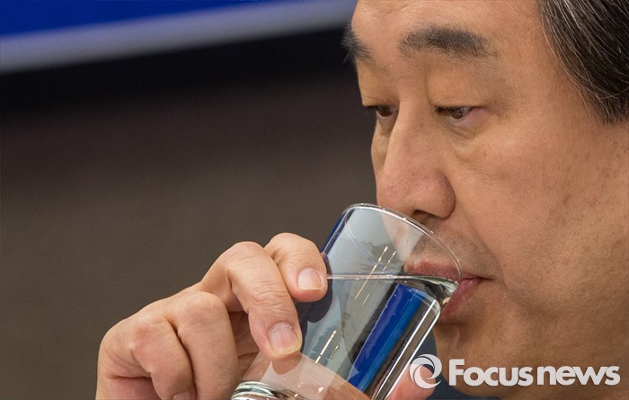 (서울=포커스뉴스) 30일 오후 서울 중구 프레스센터에서 열린 관훈클럽 초청 관훈토론회에 참석한 김무성 새누리당 대표가 물을 마시고 있다.