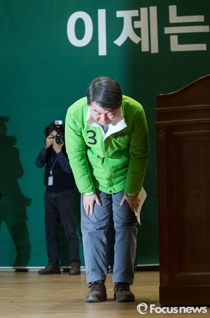 (서울=포커스뉴스) 안철수 국민의당 상임공동대표가 30일 오후 서울 여의도 국회에서 열린 총선 승리를 위한 국민의당 수도권 후보 출정식에서 인사하고 있다.