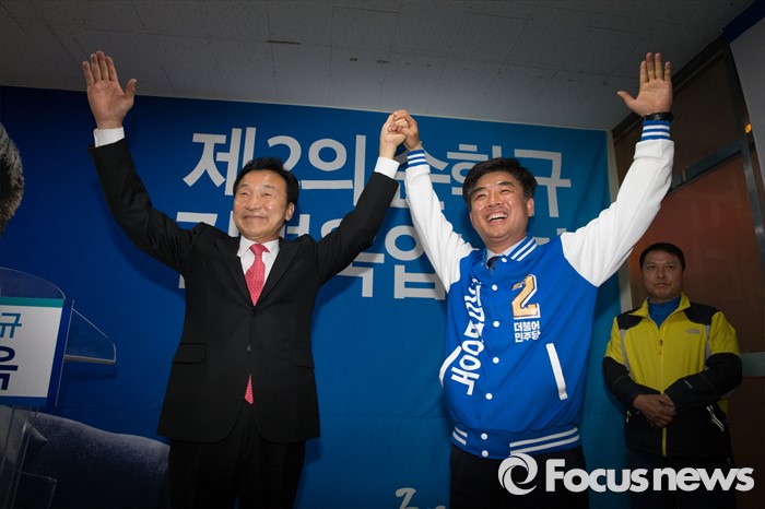 (성남=포커스뉴스) 손학규 전 더불어민주당 상임고문이 30일 오후 경기도 성남시 김병욱 더민주당 분당을 후보 선거사무소을 방문해 김후보와 기념촬영을 하고 있다.