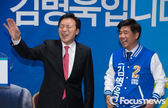 (성남=포커스뉴스) 손학규(왼쪽) 전 더불어민주당 상임고문이 30일 오후 경기도 성남시 김병욱 더민주당 분당을 후보 선거사무소을 방문해 지지자들의 열띤 성원에 웃고 있다.