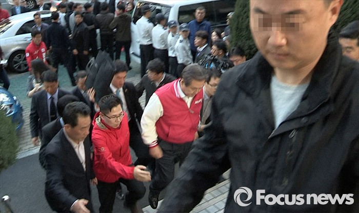 (대구=포커스뉴스) 김무성 새누리당 대표가 30일 오후 대구 수성구 새누리당 대구시당에서 열린 '선거대책위원회의'에 참석하기 위해 회의장으로 들어서고 있다. 이날 김 대표는 이재만 새누리당 대구 동구을 예비후보 지지자들을 피해 시당 옆문을 이용해 출입 하였다.
