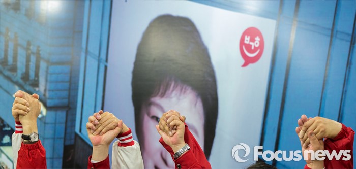 (대구=포커스뉴스) 30일 오후 대구 수성구 새누리당 대구시당에서 열린 '선거대책위원회의'에 참석한 대구경북 총선 후보들이 손을 맞잡고 있다.