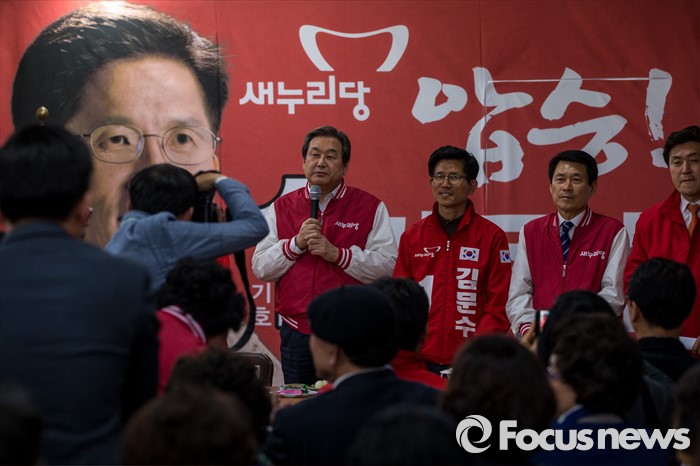 (대구=포커스뉴스) 김무성 새누리당 대표가 30일 오후 대구 수성구 새누리당 수성구갑 김문수 후보 선거사무소를 방문 하고 있다.