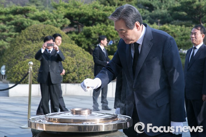 (서울=포커스뉴스) 4.13 총선 공식선거운동이 시작된 31일 오전 서울 동작구 국립현충원에서 김무성 새누리당 대표가 분향하고 있다.