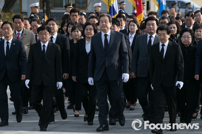(서울=포커스뉴스) 4.13 총선 공식선거운동이 시작된 31일 오전 서울 동작구 국립현충원에서 김무성 새누리당 대표를 비롯한 지도부와 후보들이 참배를 위해 입장하고 있다.