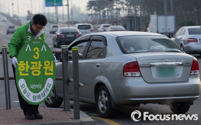 (인천=포커스뉴스) 제20대 총선 선거운동이 공식적으로 시작된 31일 오전 인천 연수구 한 사거리에서 한광원 국민의당 연수을 후보가 출근하는 시민들에게 인사하며 지지를 호소하고 있다.