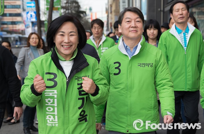 (서울=포커스뉴스) 총선 선거운동이 공식적으로 시작된 31일 오전 김기옥 국민의당 강북갑 후보가 안철수 대표와 함께 서울 강북구 수유동에서 선거 유세를 하고 있다.