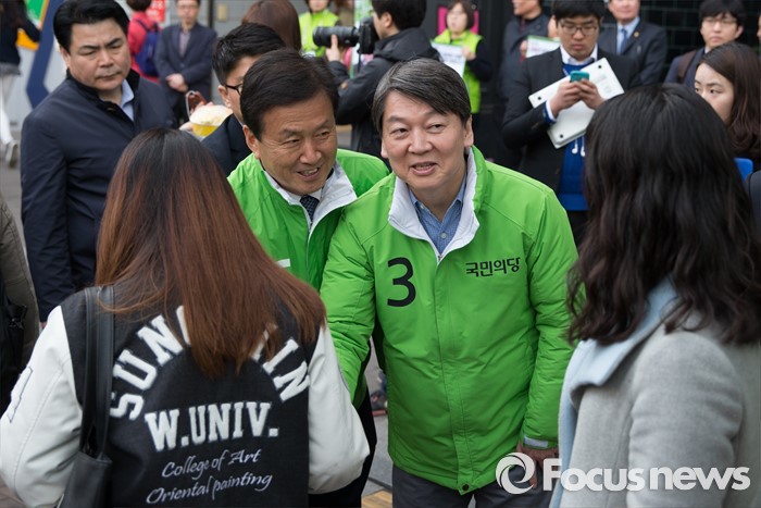 (서울=포커스뉴스) 총선 선거운동이 공식적으로 시작된 31일 오전 안철수 국민의당 상임공동대표가 서울 성북구 성신여대입구역 앞에서 도천수 성북갑 후보 지원 유세를 하고 있다.
