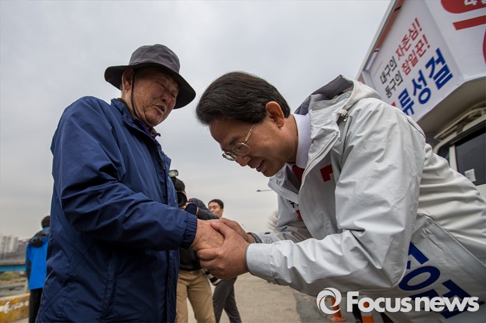 (대구=포커스뉴스) 무소속 대구 동구갑 류성걸 후보가 31일 오전 대구 동구 공항교에서 열린 선거운동 출정식에 참석해 지지자에게 한표를 호소 하고 있다.