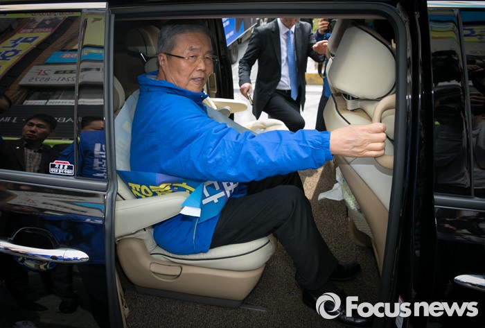 (서울=포커스뉴스) 20대 총선 공식선거 운동이 시작된 31일 오전 서울 장안동사거리에서 민병두 더불어민주당 동대문을 후보 유세를 마친 김종인 비대위 대표 겸 선대위원장이 차량에 올라 이동하고 있다.