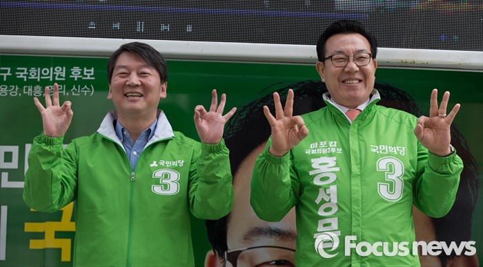 (서울=포커스뉴스) 총선 선거운동이 공식적으로 시작된 31일 오전 안철수 국민의당 상임공동대표가 서울 마포구 이대역 앞에서 마포갑 홍성문 후보와 함께 홍성덕 서대문을 후보 지원 유세를 하고 있다.