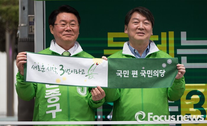 (서울=포커스뉴스) 총선 선거운동이 공식적으로 시작된 31일 오후 안철수 국민의당 상임공동대표가 서울 영등포구 여의도백화점 앞에서 김종구 영등포을 후보 지원 유세를 하고 있다.