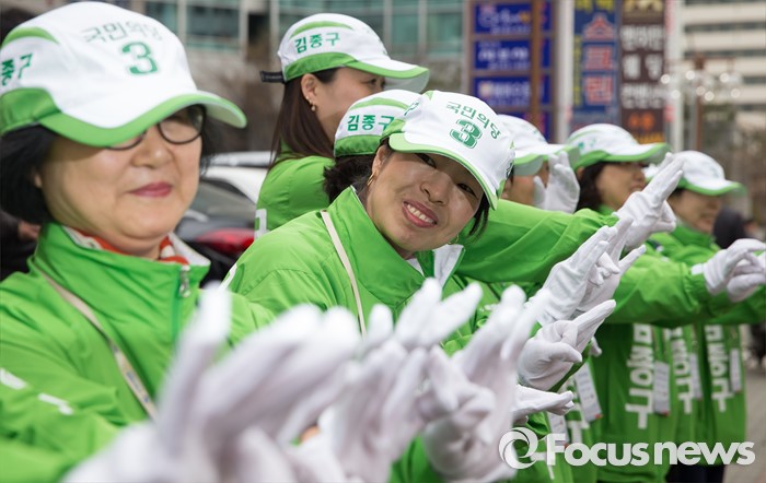 | △ 흥이 넘치는 국민의당 선거운동 봉사자들 |