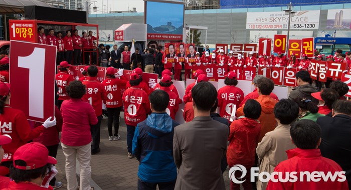 (대전=포커스뉴스) 31일 오후 대전 서대전역광장에서 열린 대전 새누리당 후보자 합동유세에서 이인제 중앙선거대책위원회 공동위원장이 지원유세를 하고 있다.