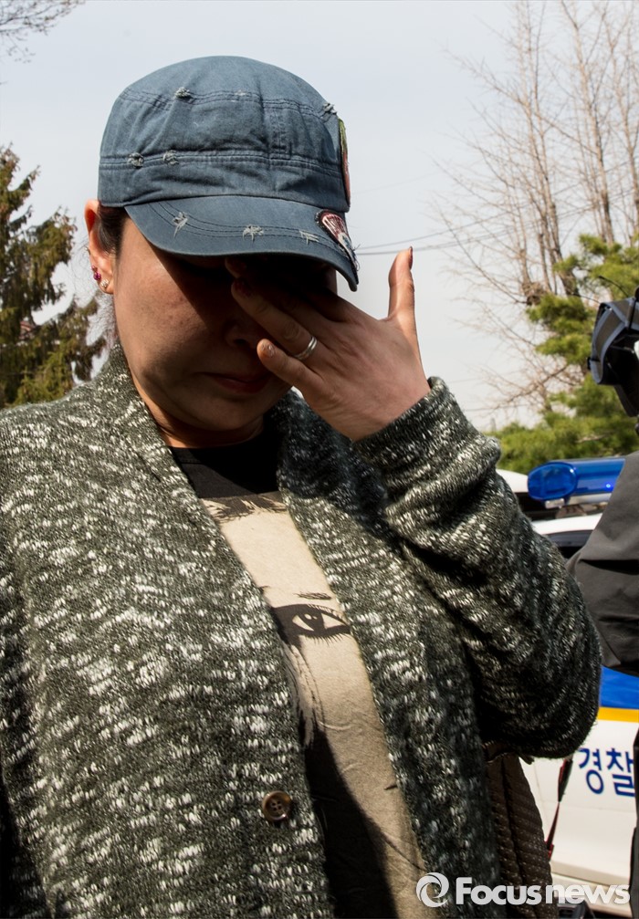 (서울=포커스뉴스) 헌법재판소의 자발적 성매매 처벌 규정 합헌 결정이 내려진 23일 오후 서울 재동 헌법재판소 앞에서 한터 관계자가 기자회견 후 눈물을 흘리고 있다.