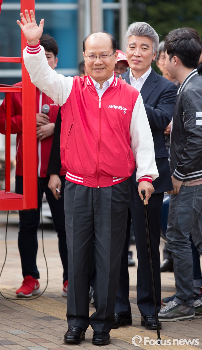 (대전=포커스뉴스) 31일 오후 대전 서대전역광장에서 열린 대전 새누리당 후보자 합동유세에서 이종명 새누리당 비례대표 2번 후보가 시민들에게 인사를 하고 있다.