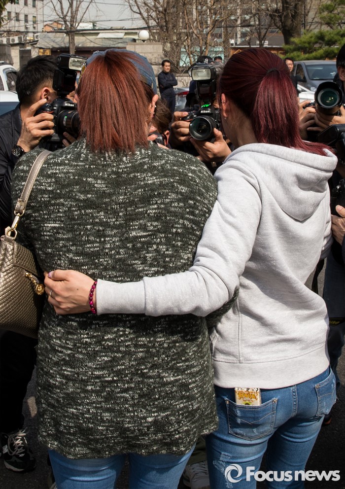 (서울=포커스뉴스) 헌법재판소의 자발적 성매매 처벌 규정 합헌 결정이 내려진 23일 오후 서울 재동 헌법재판소 앞에서 한터 관계자들이 기자회견 후 눈물을 흘리고 있다.