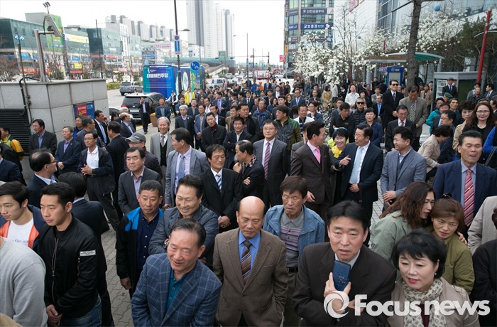 (안산=포커스뉴스) 20대 총선 공식선거 운동이 시작된 31일 오후 경기도 홈플러스 안산고잔점 앞에서 시민 및 지지자들이 더불어민주당 안산 집중유세를 지켜보고 있다.