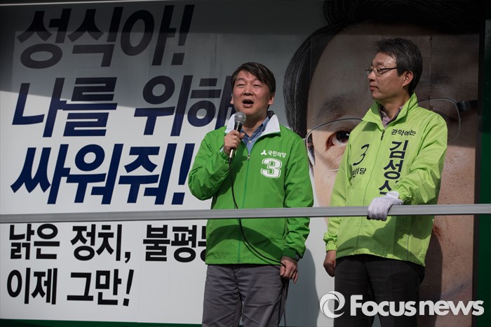 (서울=포커스뉴스) 총선 선거운동이 공식적으로 시작된 31일 오후 안철수 국민의당 상임공동대표가 서울 관악구 관악플라자 앞에서 김성식 관악갑 후보 지원 유세를 하고 있다.