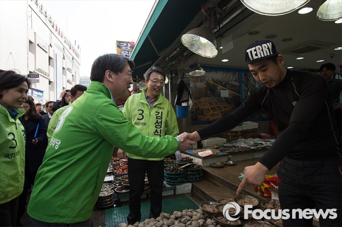 (서울=포커스뉴스) 총선 선거운동이 공식적으로 시작된 31일 오후 안철수 국민의당 상임공동대표가 서울 관악구 관악플라자 옆 시장에서 김성식 관악갑 후보 지원 유세를 하고 있다.