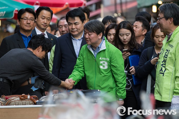 (서울=포커스뉴스) 총선 선거운동이 공식적으로 시작된 31일 오후 안철수 국민의당 상임공동대표가 서울 관악구 관악플라자 옆 시장에서 김성식 관악갑 후보 지원 유세를 하고 있다.