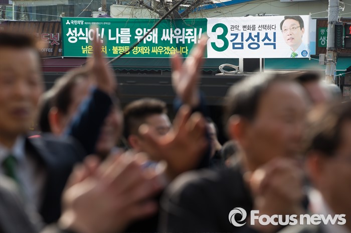 (서울=포커스뉴스) 총선 선거운동이 공식적으로 시작된 31일 오후 서울 관악구 관악플라자 앞에서 김성식 관악갑 후보 지원 유세가 열리고 있는 가운데 김성식 후보 지지자들이 김 후보의 발언에 갈채를 보내고 있다.