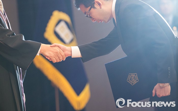 (서울=포커스뉴스) 1일 오전 서울 서초구 대법원 대강당에서 열린 신임 법관 임명식에 참석한 신임 법관들이 양승태 대법원장으로부터 임명장을 받은 후 악수하고 있다.