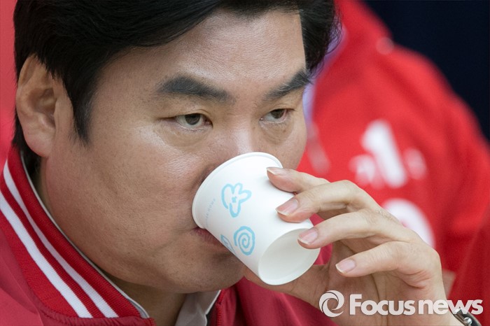 | △ 목 축이는 원유철 |