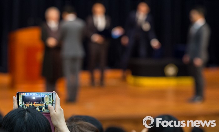 (서울=포커스뉴스) 1일 오전 서울 서초구 대법원 대강당에서 열린 신임 법관 임명식에 참석한 신임 법관의 가족이 기념촬영을 하고 있다.