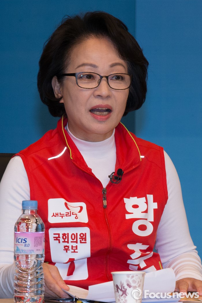 (서울=포커스뉴스) 1일 오전 서울 마포구 서강대 스튜디오에서 제20대 국회의원선거 용산구 후보자 토론회 시작 전 황춘자 새누리당 후보가 리허설을 하고 있다.