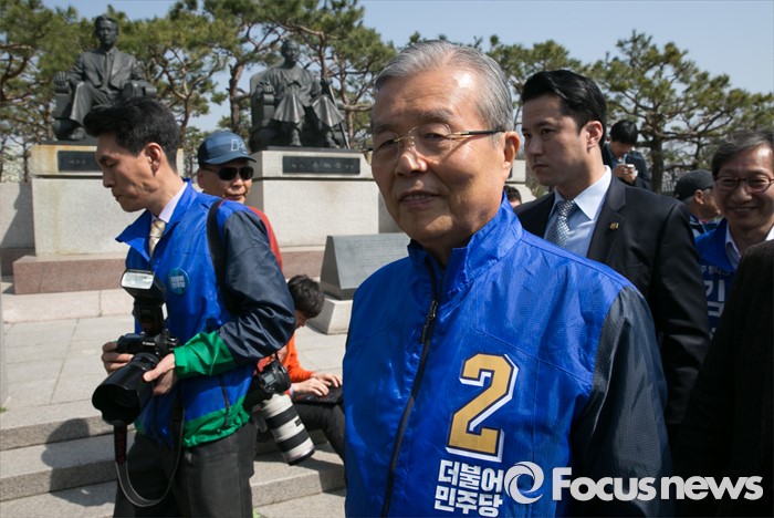 (전주=포커스뉴스) 1일 오전 전북 전주시 덕진공원을 방문한 김종인 더불어민주당 비대위 대표 겸 선대위원장이 김 대표의 조부인 가인 김병로 선생 등 '법조 3성' 동상을 둘러본 뒤 이동하고 있다.