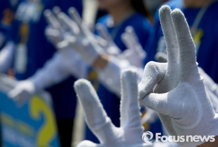 | △ 장갑이 닳도록 지지 호소 |