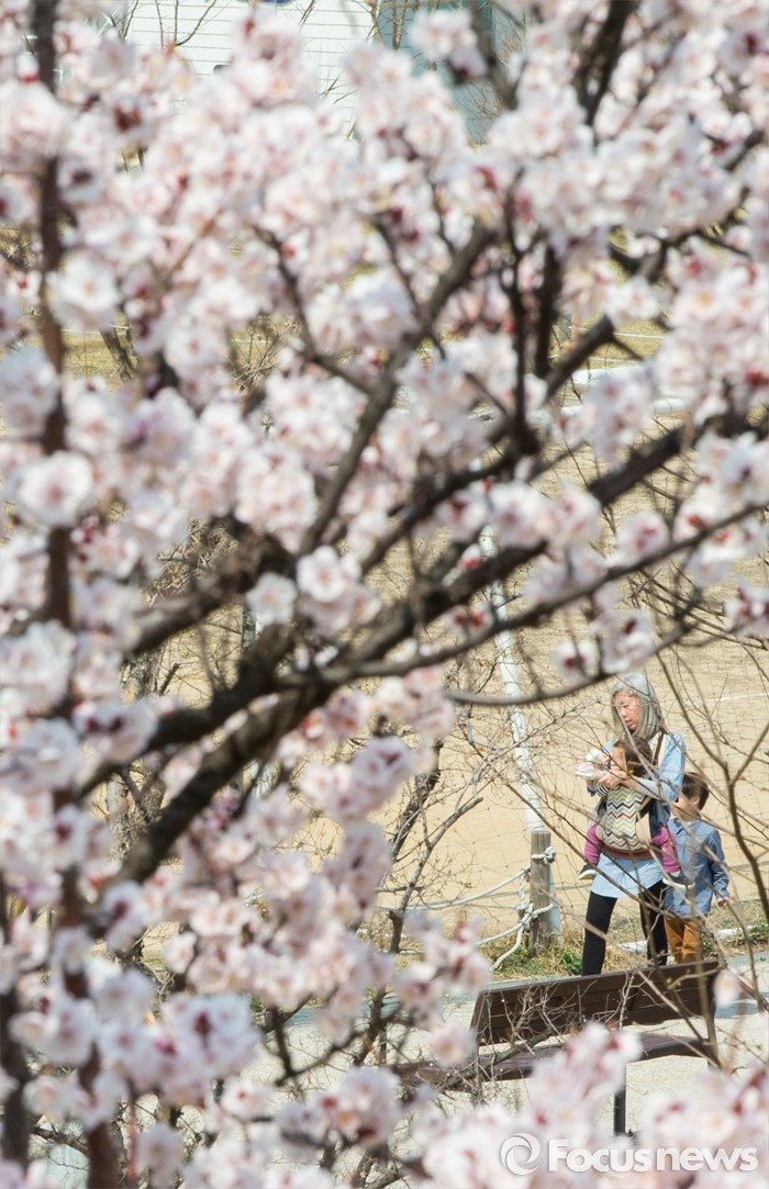 (서울=포커스뉴스) 봄 기운이 완연한 1일 오후 서울 여의도 한강공원의 벚나무에 꽃이 만개해 있다.