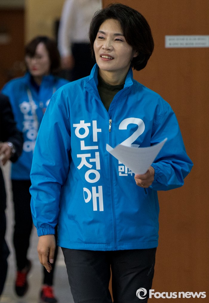 (서울=포커스뉴스) 한정애 더불어민주당 강서병 후보가 1일 오후 서울 여의도 국회 정론관에서 국민의당 김성호 후보와 단일화에 대한 기자회견을 하기 위해 발걸음을 옮기고 있다. 서울 강서병 지역 한정애 더민주 후보, 김성호 국민의당 후보 간의 단일화는 첫 수도권 단일화 합의로 관심을 모았으나 당명 사용 문제가 해결되지 않아 진통을 겪을 예상이다.