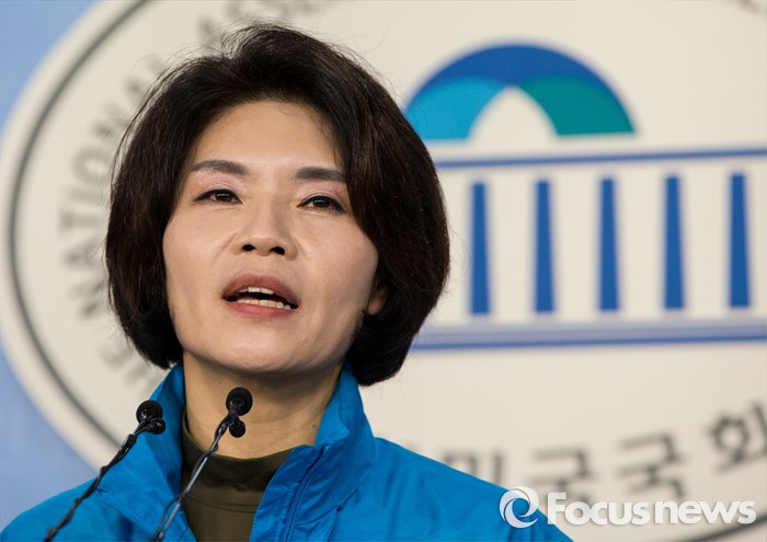 (서울=포커스뉴스) 한정애 더불어민주당 강서병 후보가 1일 오후 서울 여의도 국회 정론관에서 국민의당 김성호 후보와 단일화에 대한 기자회견을 하고 있다. 서울 강서병 지역 한정애 더민주 후보, 김성호 국민의당 후보 간의 단일화는 첫 수도권 단일화 합의로 관심을 모았으나 당명 사용 문제가 해결되지 않아 진통을 겪을 예상이다.