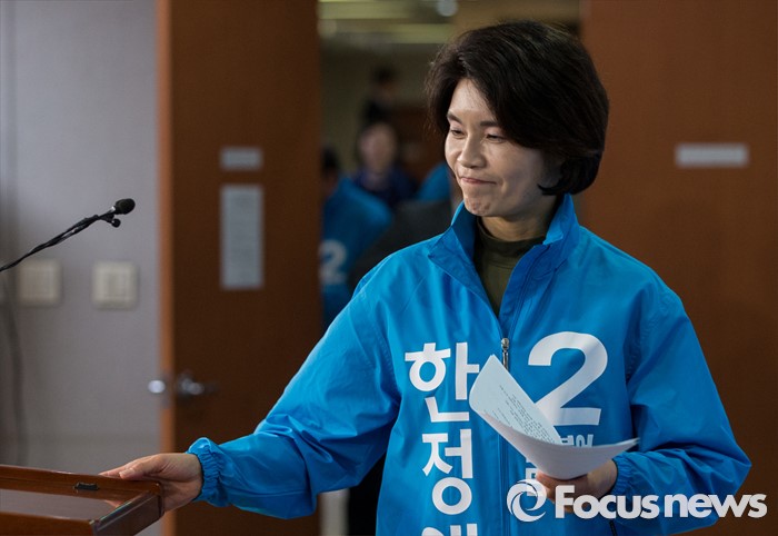 (서울=포커스뉴스) 한정애 더불어민주당 강서병 후보가 1일 오후 서울 여의도 국회 정론관에서 국민의당 김성호 후보와 단일화에 대한 기자회견을 하기 위해 발걸음을 옮기고 있다. 서울 강서병 지역 한정애 더민주 후보, 김성호 국민의당 후보 간의 단일화는 첫 수도권 단일화 합의로 관심을 모았으나 당명 사용 문제가 해결되지 않아 진통을 겪을 예상이다.