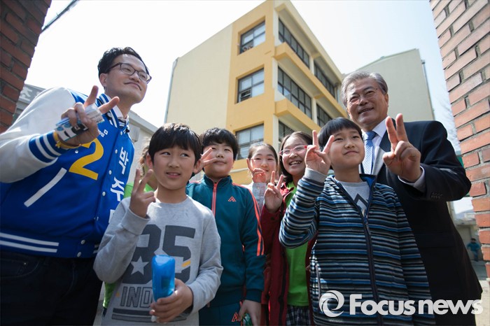 | △ 초등학생과 함께한 문재인 전 대표 |