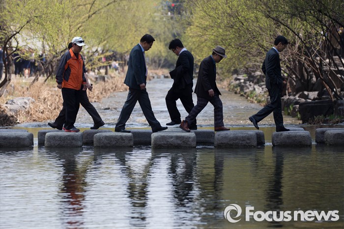 (서울=포커스뉴스) 완연한 봄 날씨를 보인 1일 오후 서울 종로구 청계천을 찾은 시민들이 봄 날씨를 만끽하고 있다.