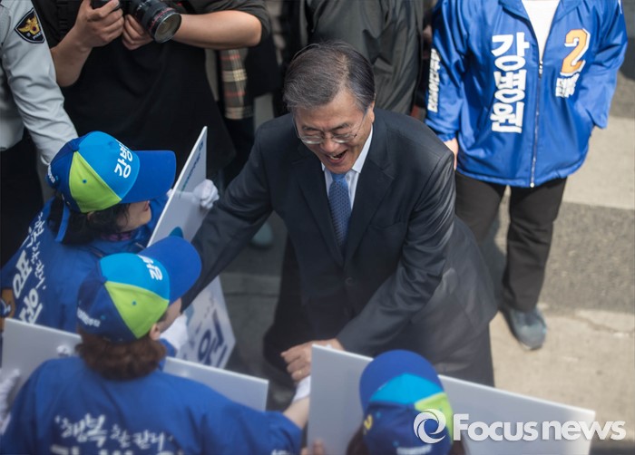 (서울=포커스뉴스) 1일 오후 문재인 전 더불어민주당 대표가 서울 은평구 연신내역 앞에서 강병원 은평을 후보와 함께 유세를 하고 있다.
