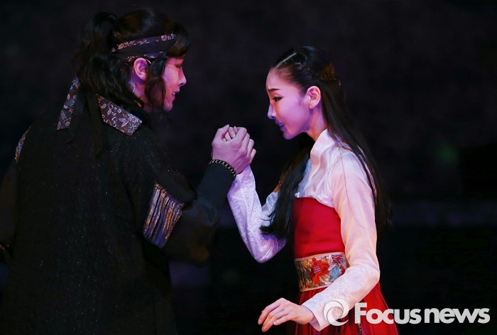 (서울=포커스뉴스) 1일 오후 서울 중구 정동극장에서 열린 2016 상설공연 '가온세상의 시작' 프레스콜 행사에 참여한 배우들이 주요 장면을 시연하고 있다.