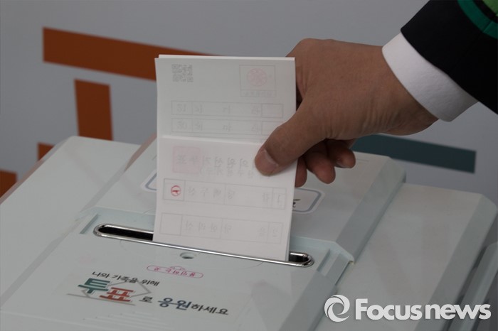 (서울=포커스뉴스) 1일 오후 서울 용산구 서울역사에 설치된 제20대 국회의원선거 투표참여 홍보관에서 류정민 서울역장이 사전투표 체험을 하고 있다. 체험관은 이달 1일부터 6일까지 운영한다.