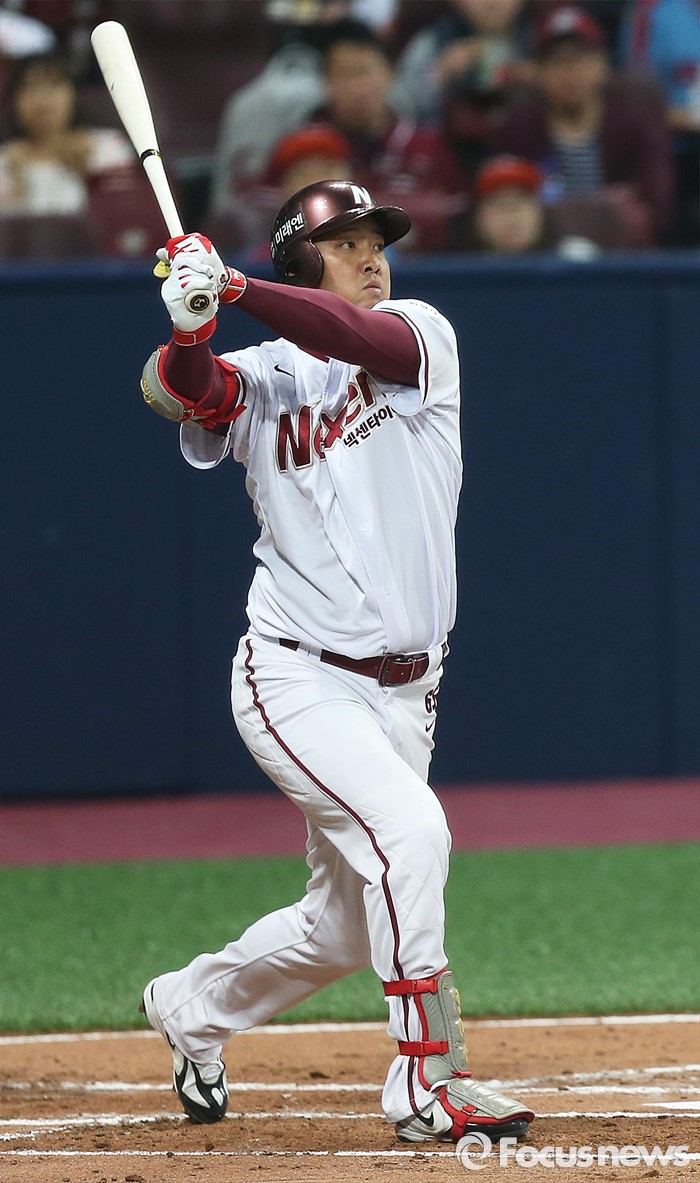(서울=포커스뉴스) 1일 오후 서울 구로구 고척스카이돔에서 열린 2016 타이어뱅크 프로야구 개막전 넥센 히어로즈와 롯데 자이언츠의 경기에서 1회말 첫 타석에 나선 채태인이 파울볼을 바라보고 있다.