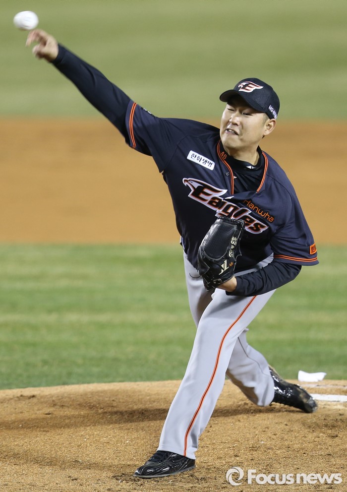 (서울=포커스뉴스) 1일 서울 잠실구장에서 열린 2016프로야구 개막전 한화-LG 경기에서 1회말 한화 선발투수 송은범이 투구하고 있다.