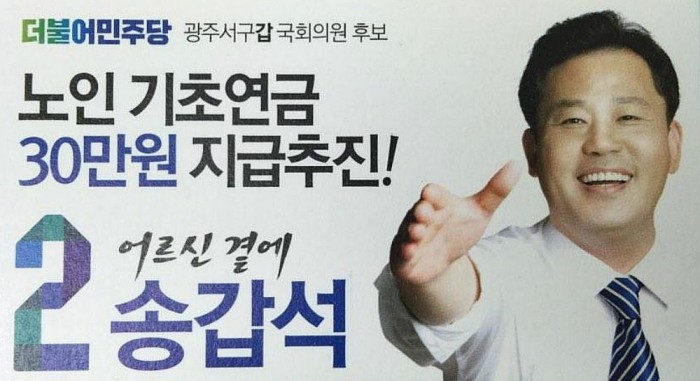 (서울=포커스뉴스) 전남 광주 서구갑에 출마한 송갑석 더불어민주당 후보는 1일 "소득 하위 70% 어르신께 기초연금 30만 지급을 추진하겠다"고 밝혔다.